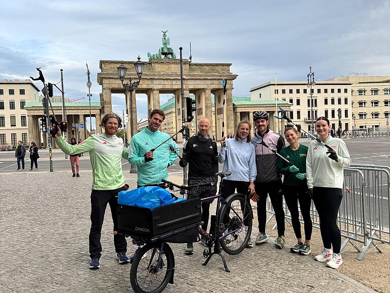 Am Donnerstag nach dem BMW BERLIN-MARATHON traf sich eine Gruppe vom Organisator SCC EVENTS, um rund um das Start- und Zielgebiet noch einmal aktiv zu werden – diesmal jedoch nicht zum Arbeiten, sondern für die Umwelt. Beim sogenannten Plogging verbanden sie das Laufen mit dem Einsammeln von Müll und sorgten so dafür, dass im Nachgang auch der letzte Rest Müll noch entsorgt wurde.