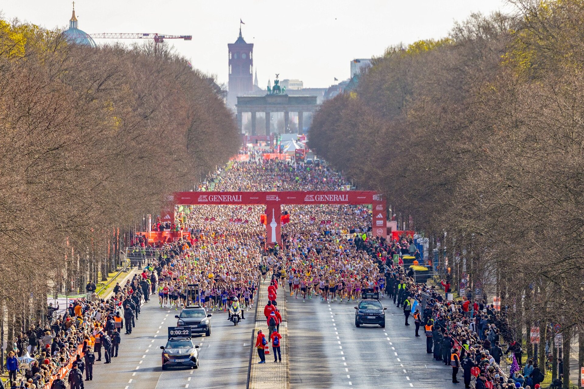 Die Masse an Läufer:innen wird beim GENERALI BERLINER HALBMARATHON 2024 ins Rennen geschickt