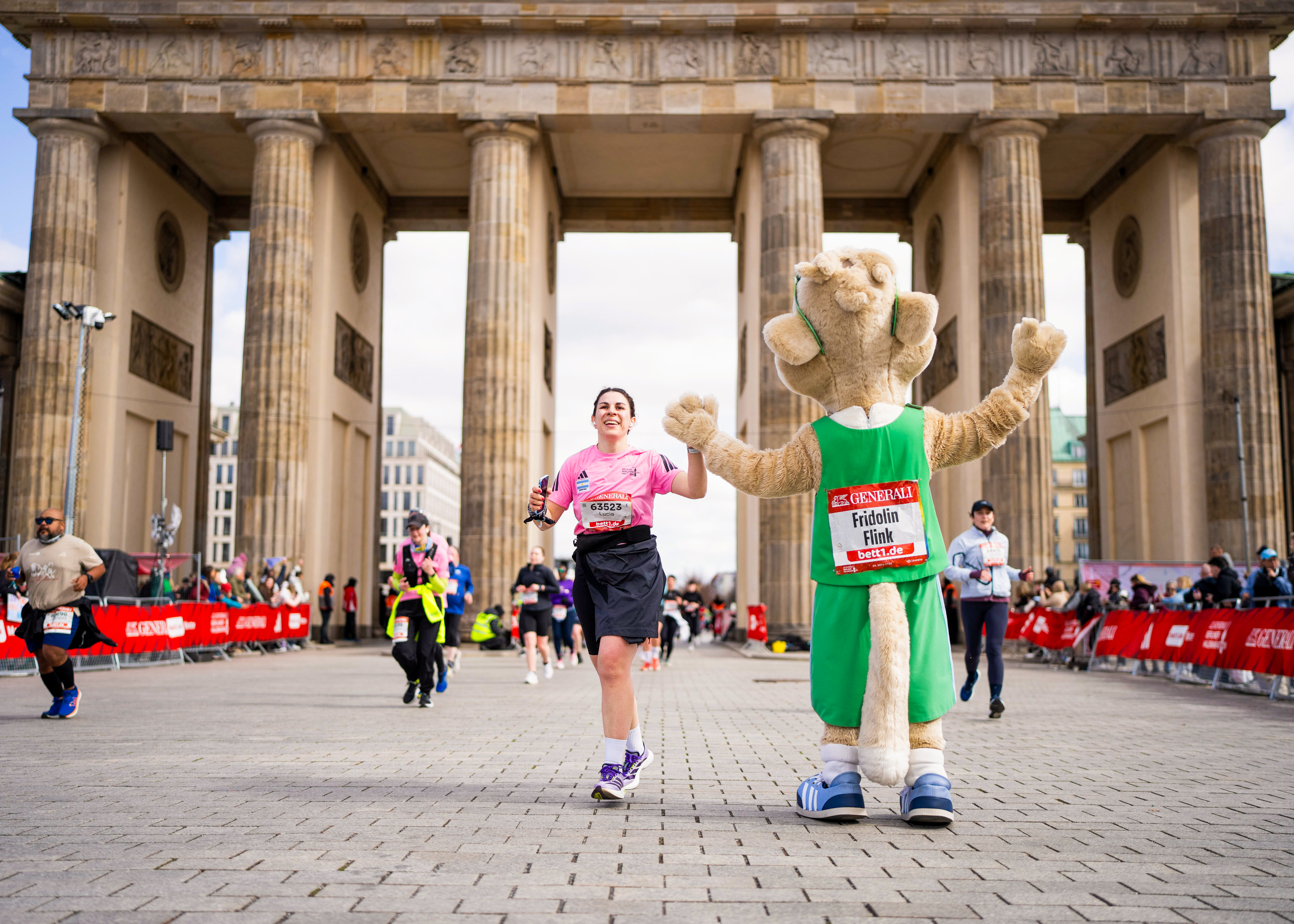 Beim GENERALI BERLINER HALBMARATHON sorgt Fridolin Flink kurz vor dem Brandenburger Tor für einen Motivations-Kick bei allen Läufer:innen.